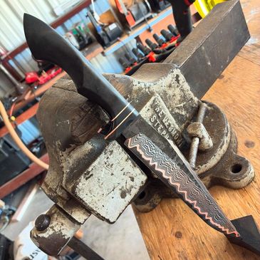 Featuring a Gabon Ebony Handle and Black Micarta with Copper Spacers Guard